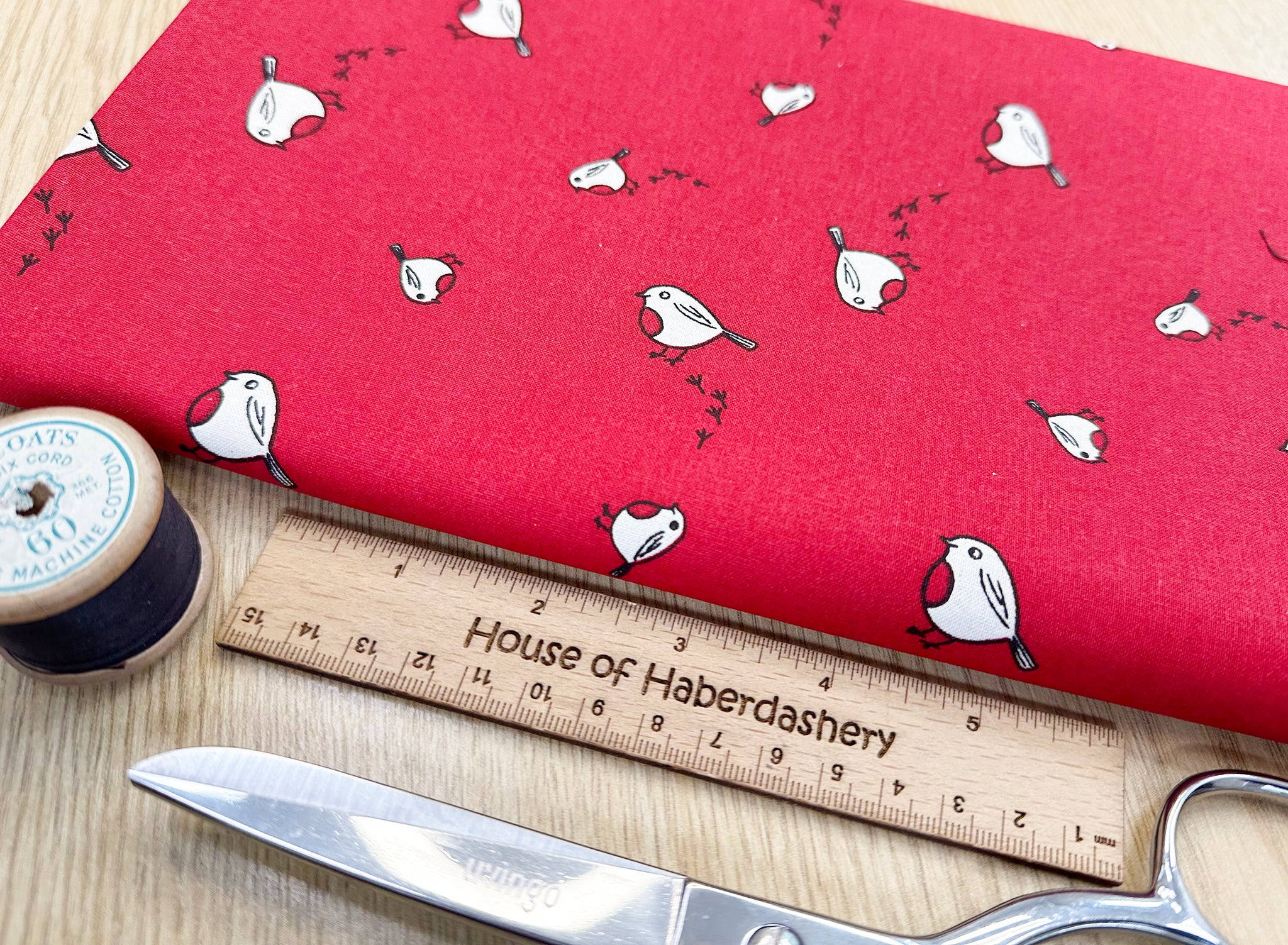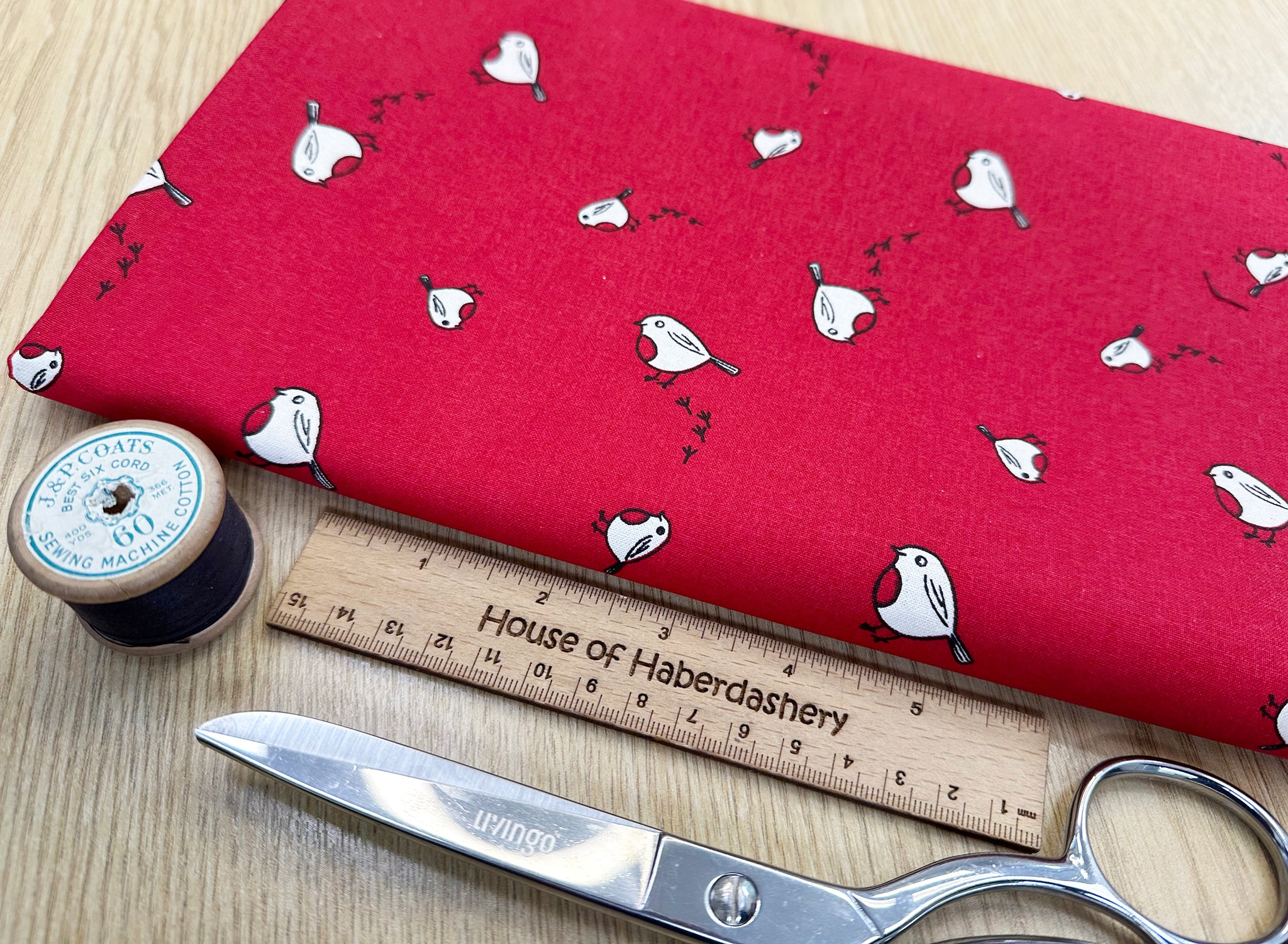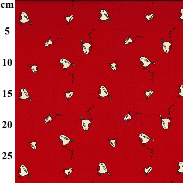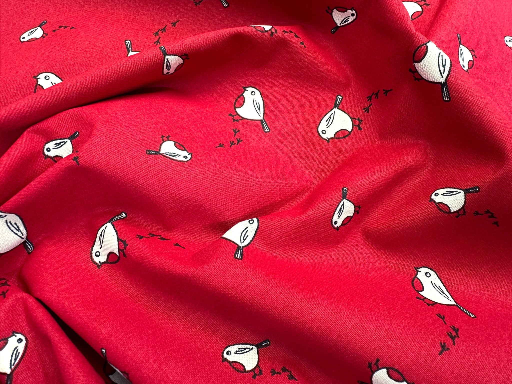 Christmas Fabric - Red Robin on Red - 100% Cotton Fabric