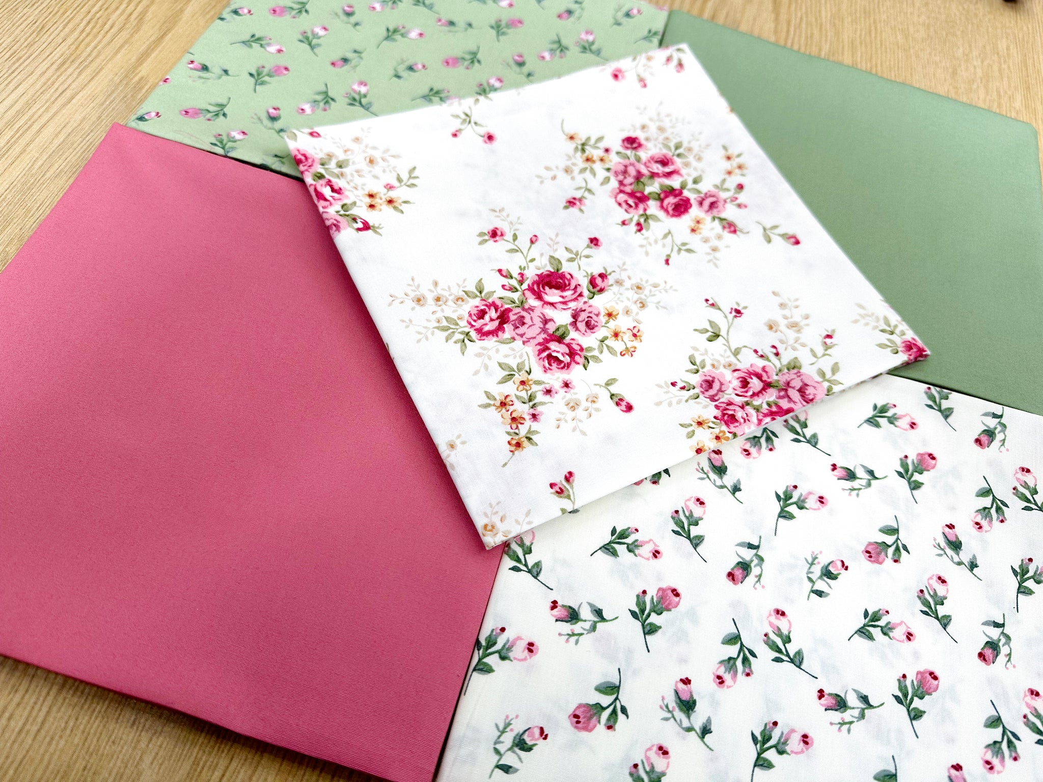 Fat Quarter Bundle - Pretty Pink & Green Rose Bud Floral Mix