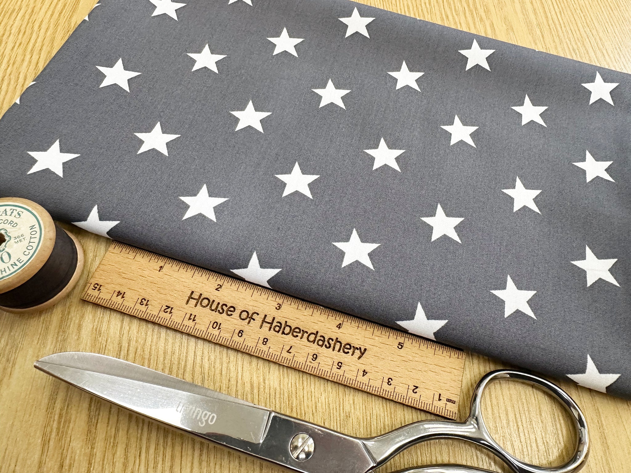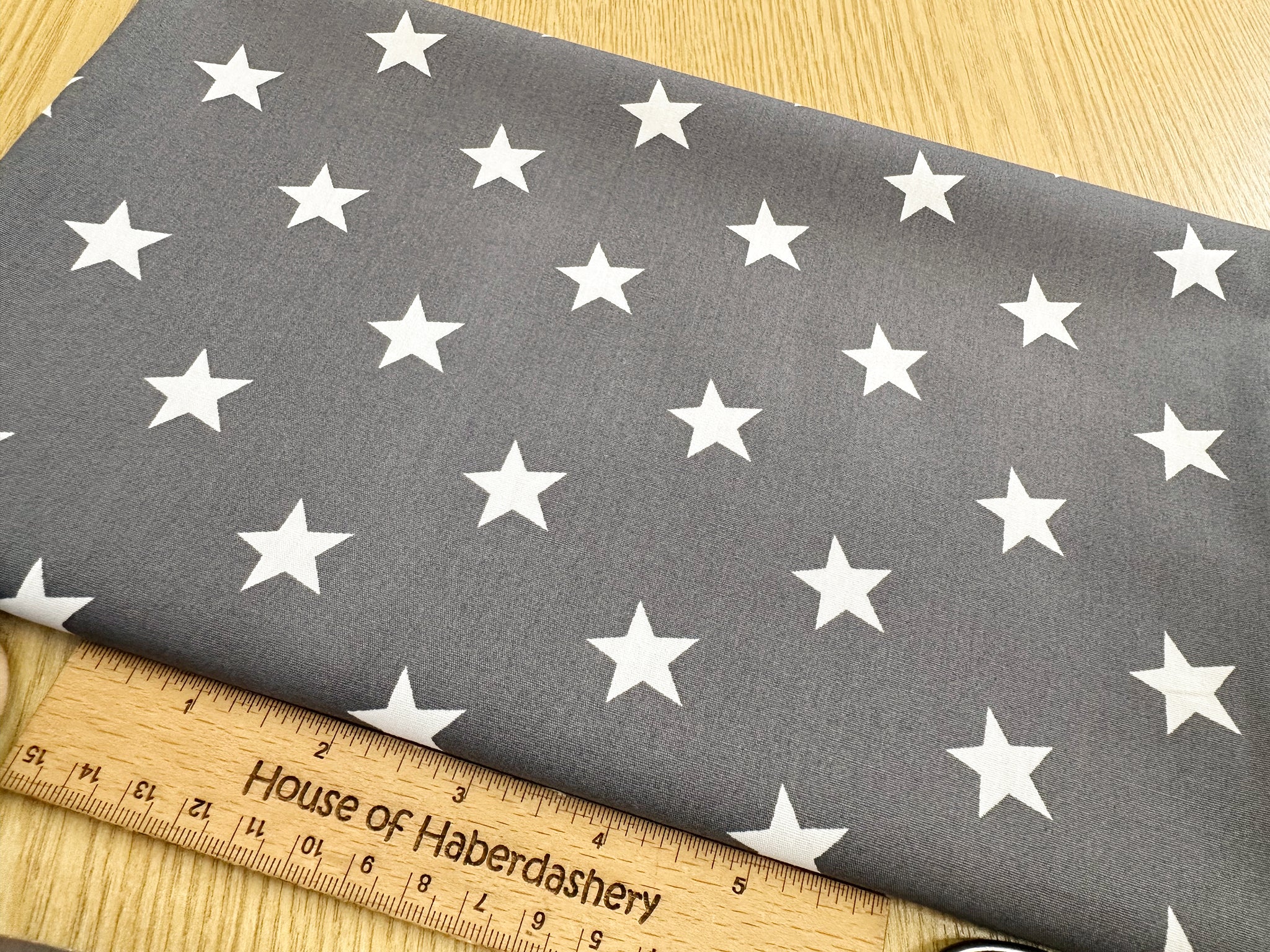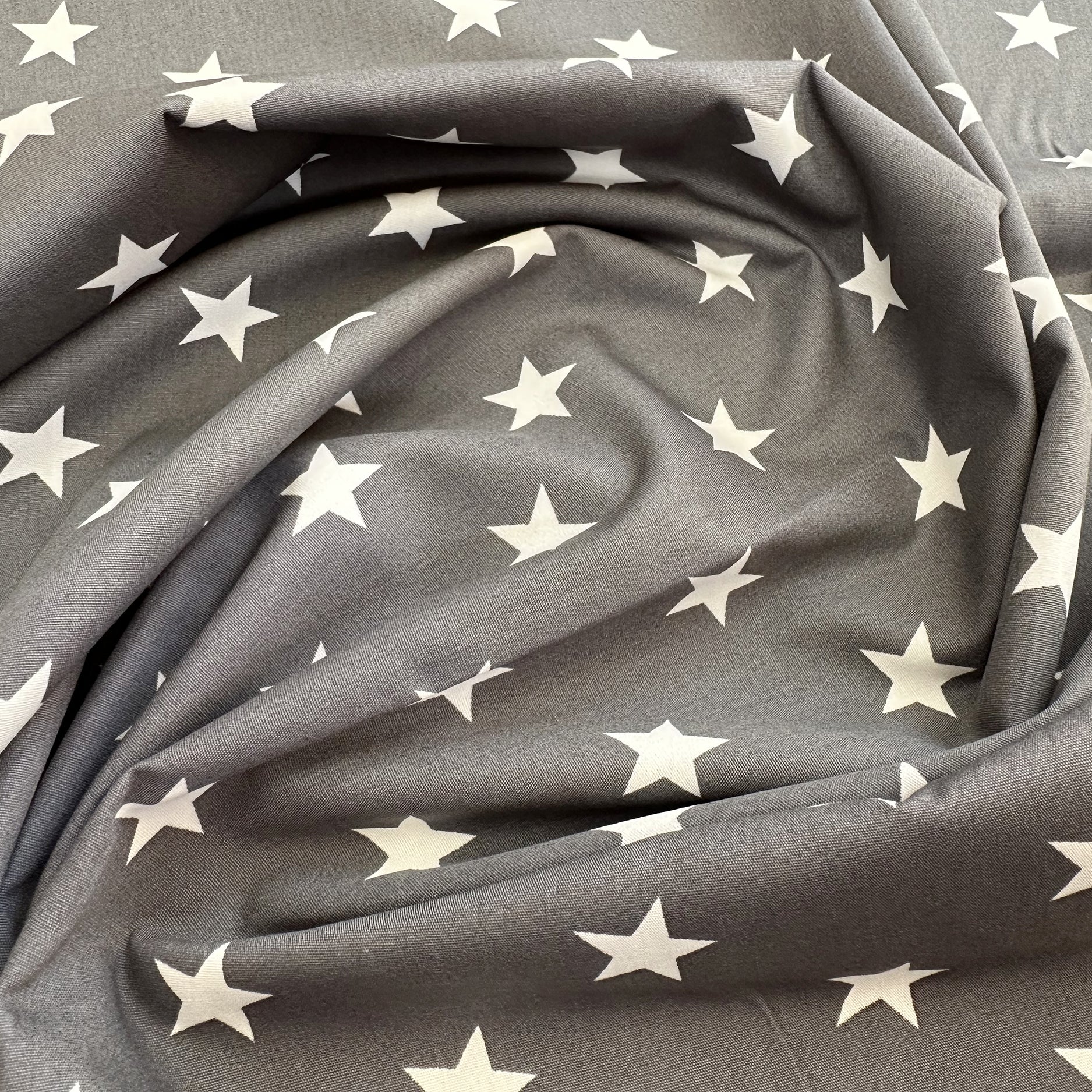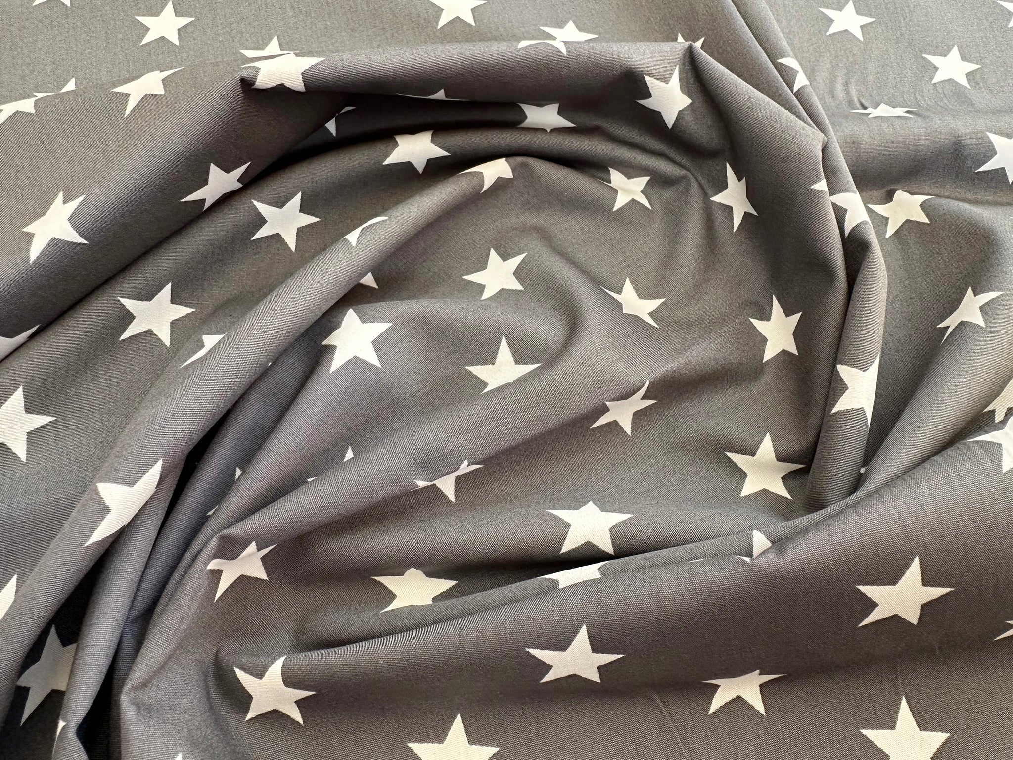 Cotton Fabric - Dark Grey & White Star Print - Craft Fabric Material