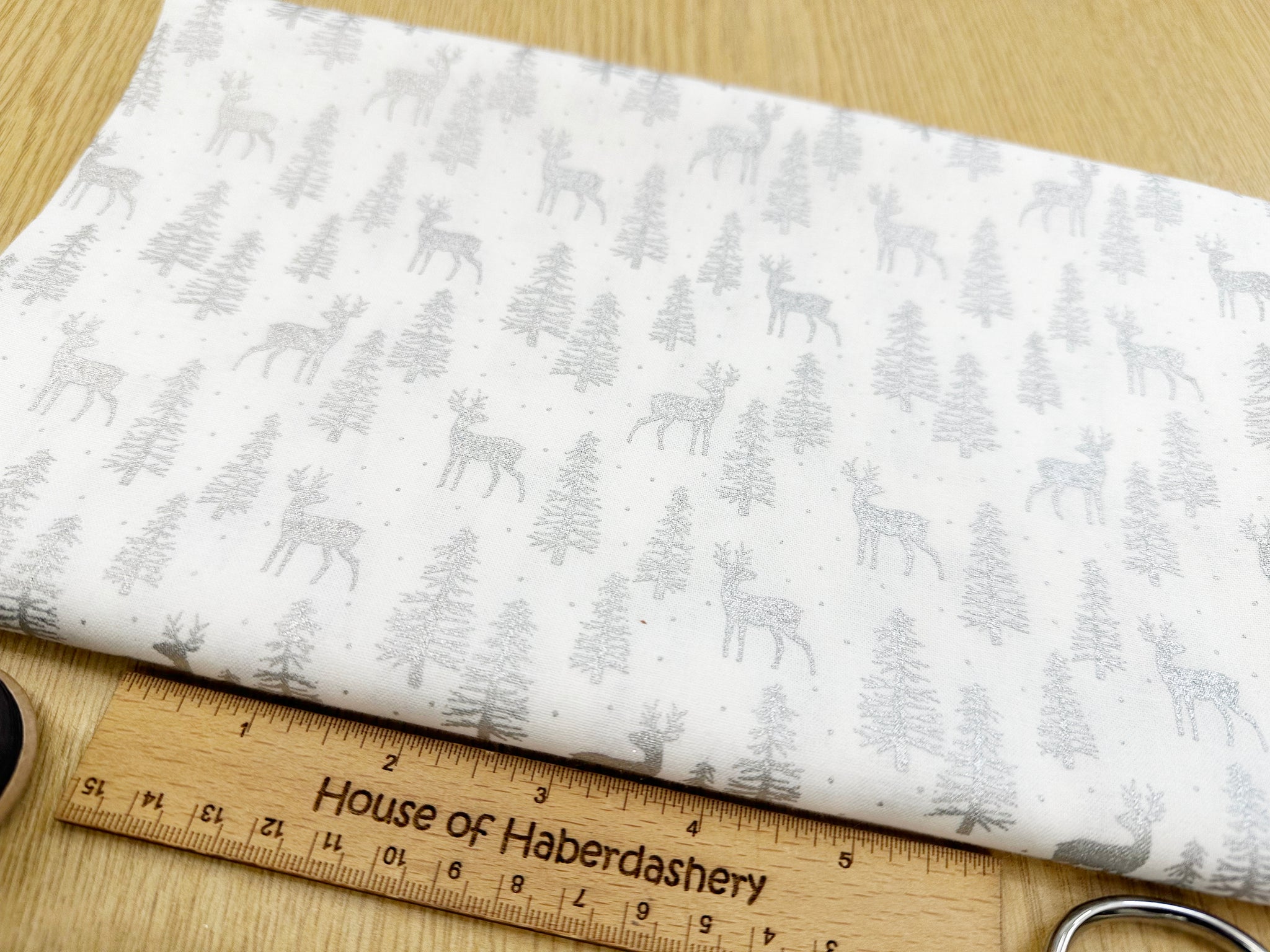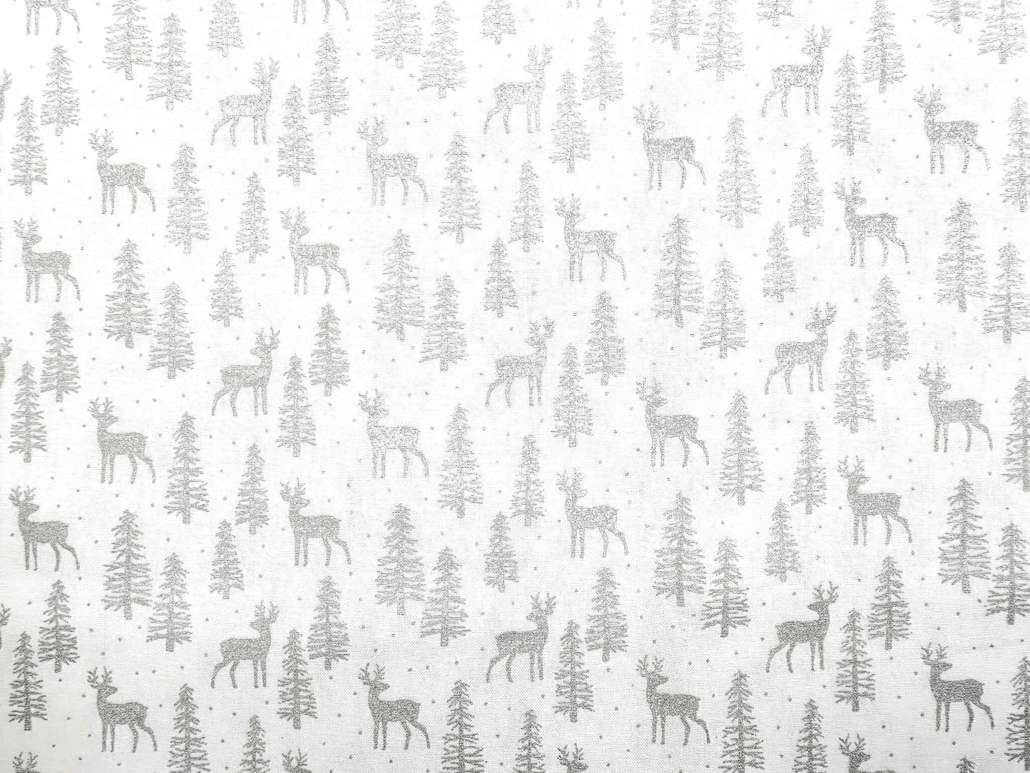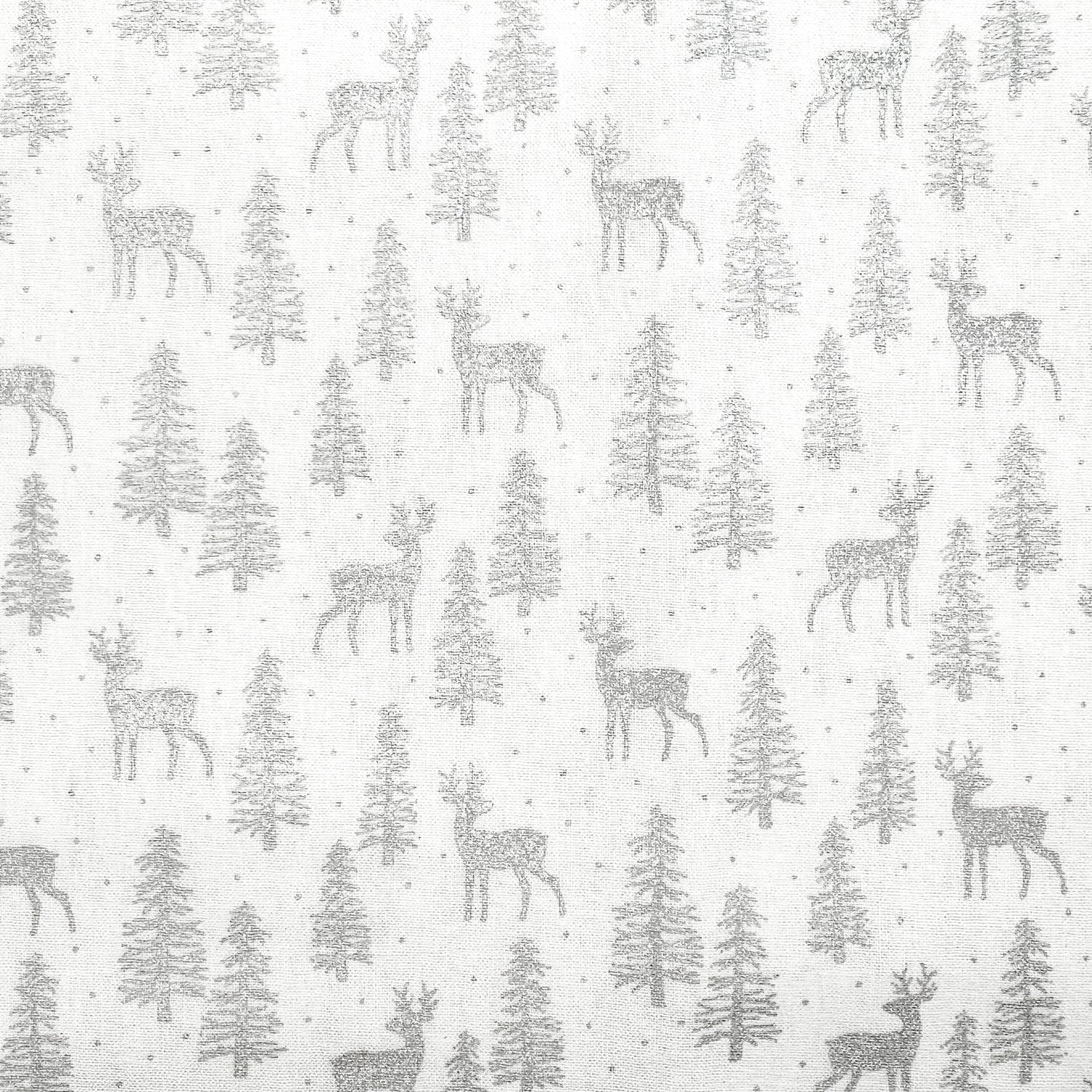 Christmas Fabric - Silver Reindeer & Trees on White - Cotton Craft Fabric Material