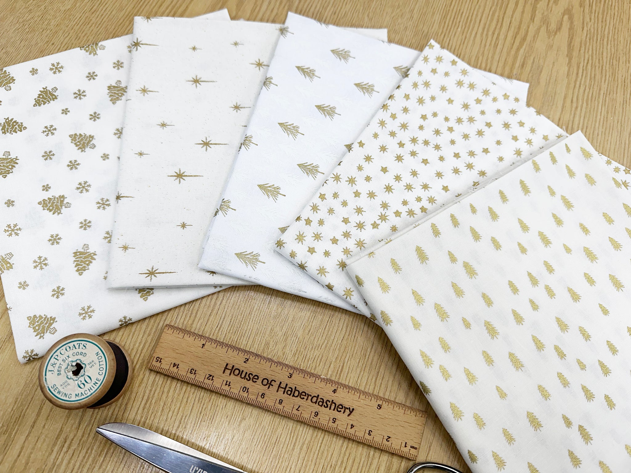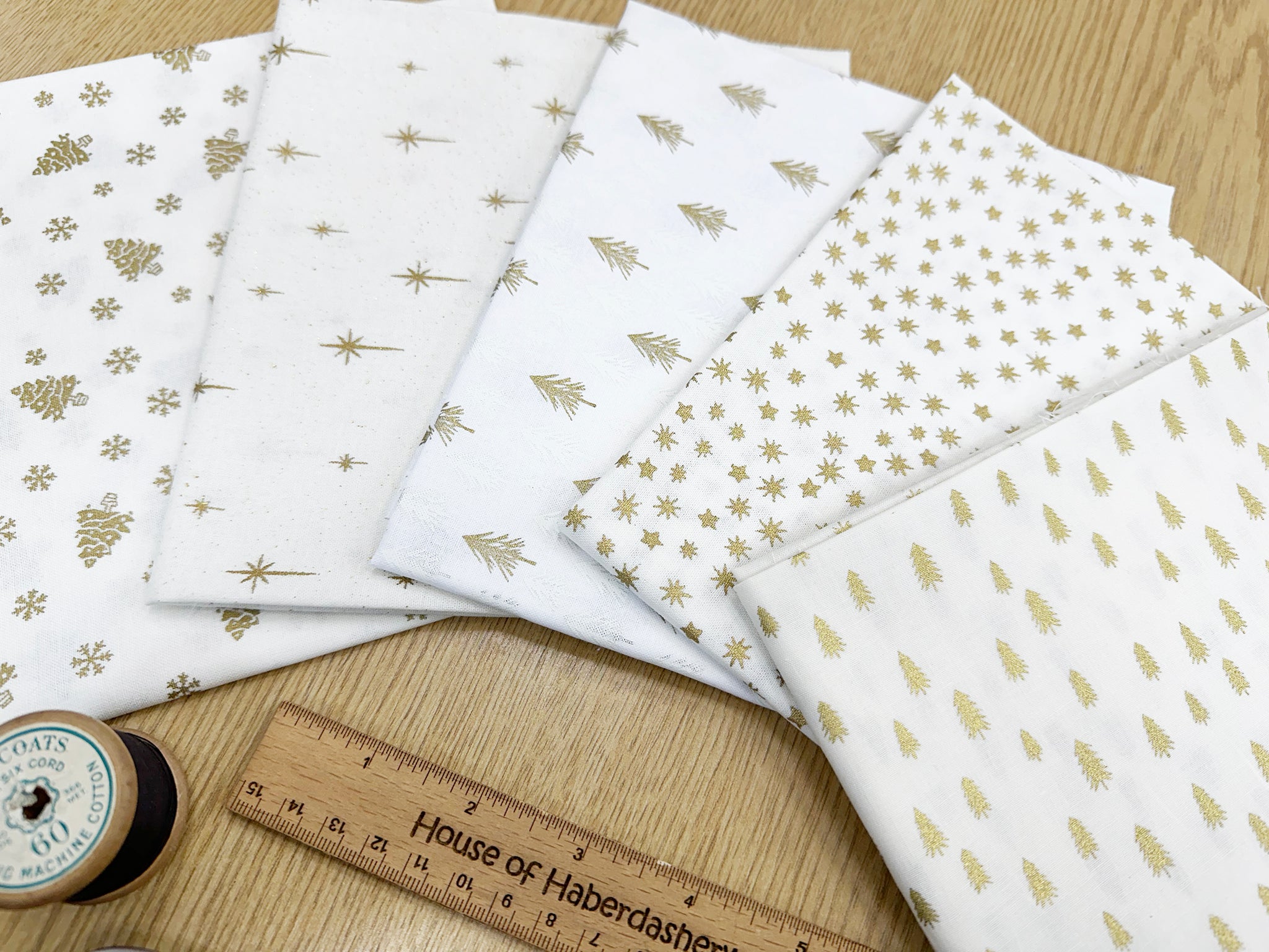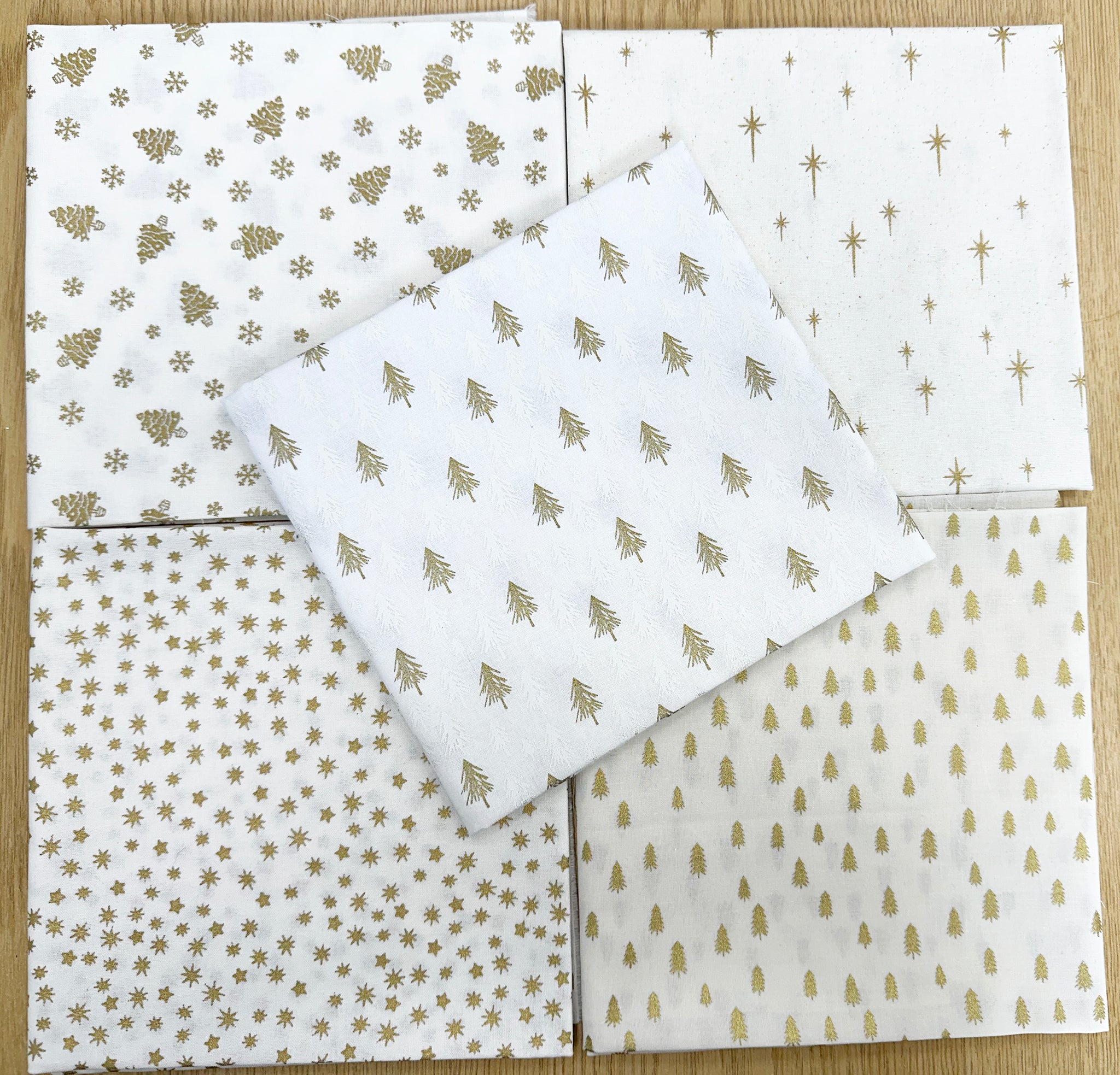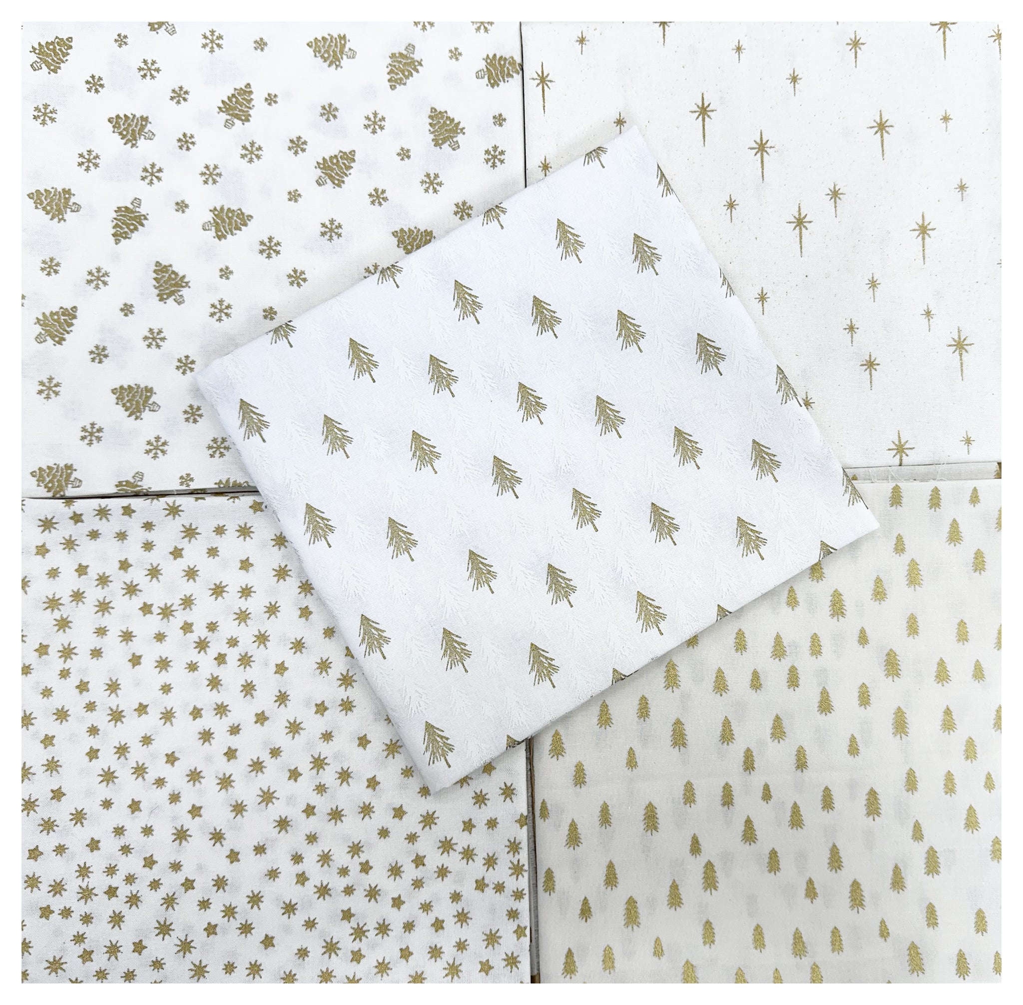 Fat Quarter Bundle - Christmas Ivory White & Silver Trees Snowflakes Stars Print