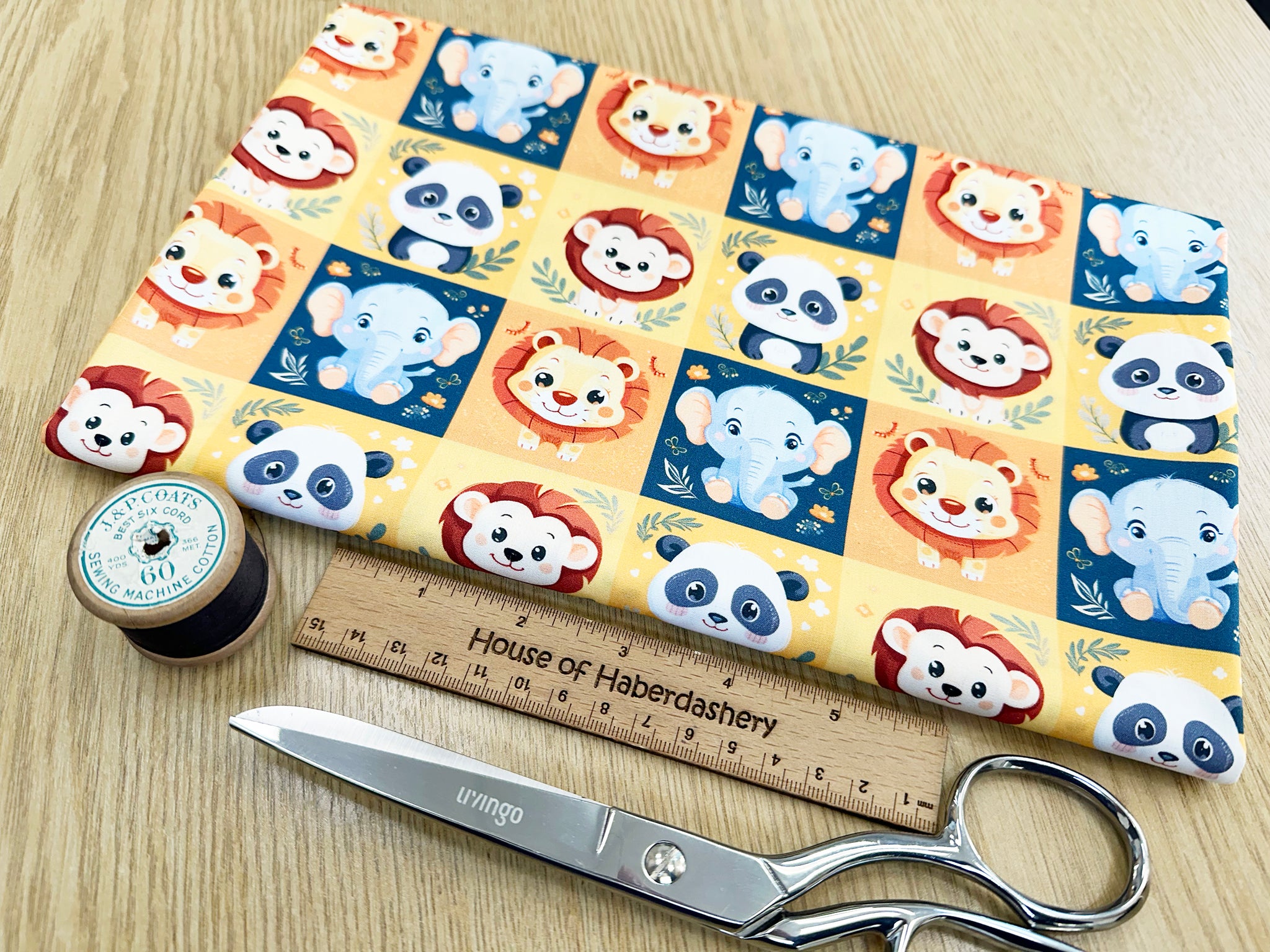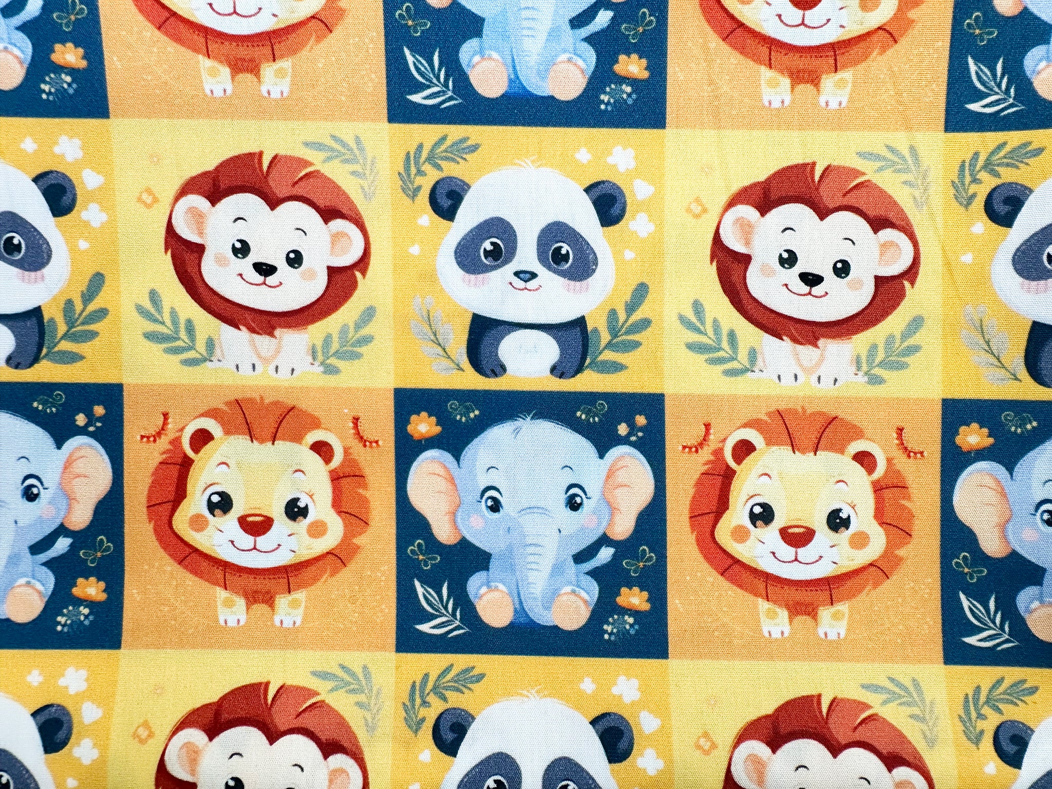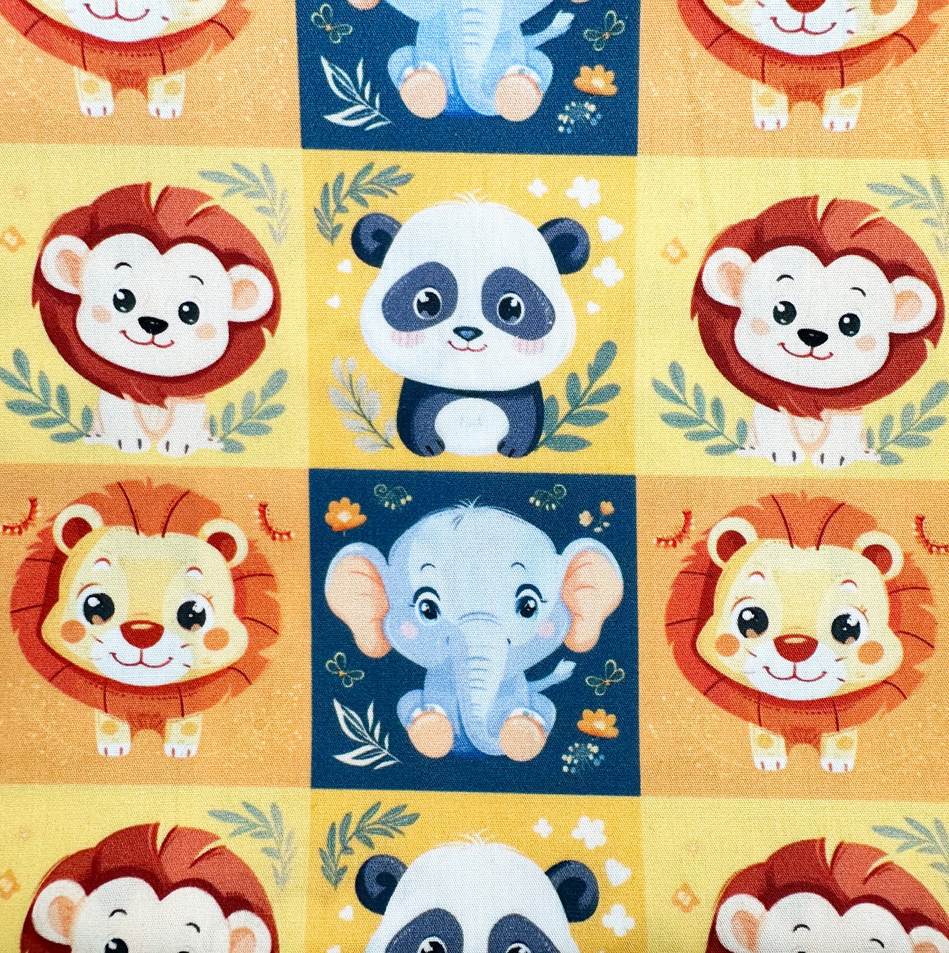 Cotton Fabric - Cute Baby Safari Animals Nursery Craft Fabric Material