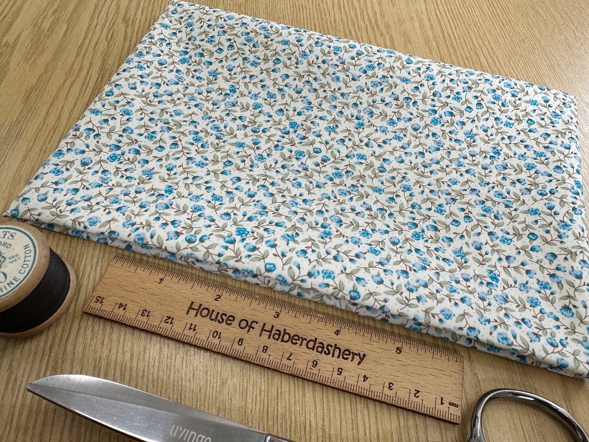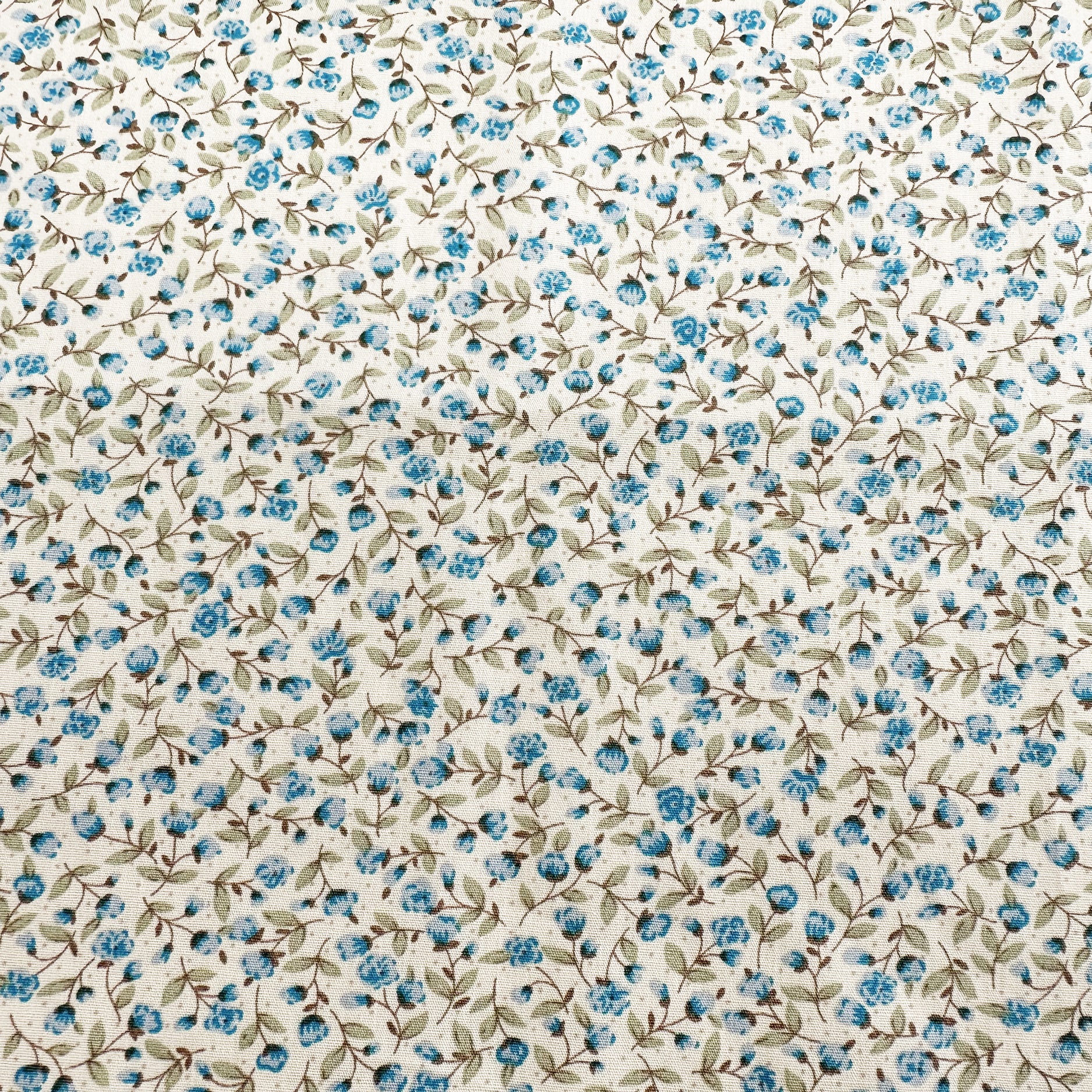 Cotton Fabric - Pretty Blue Ditsy Floral Print on Cream