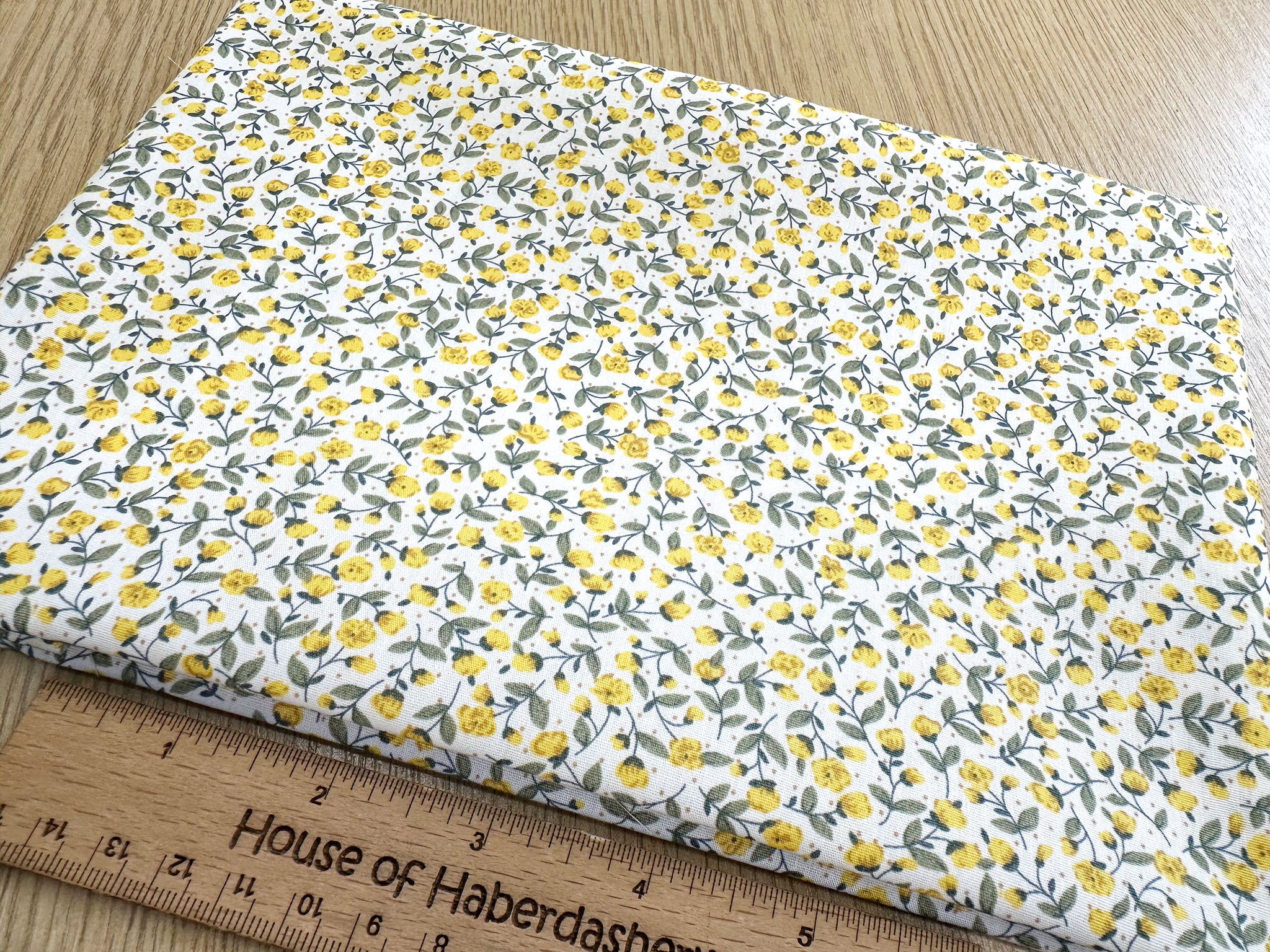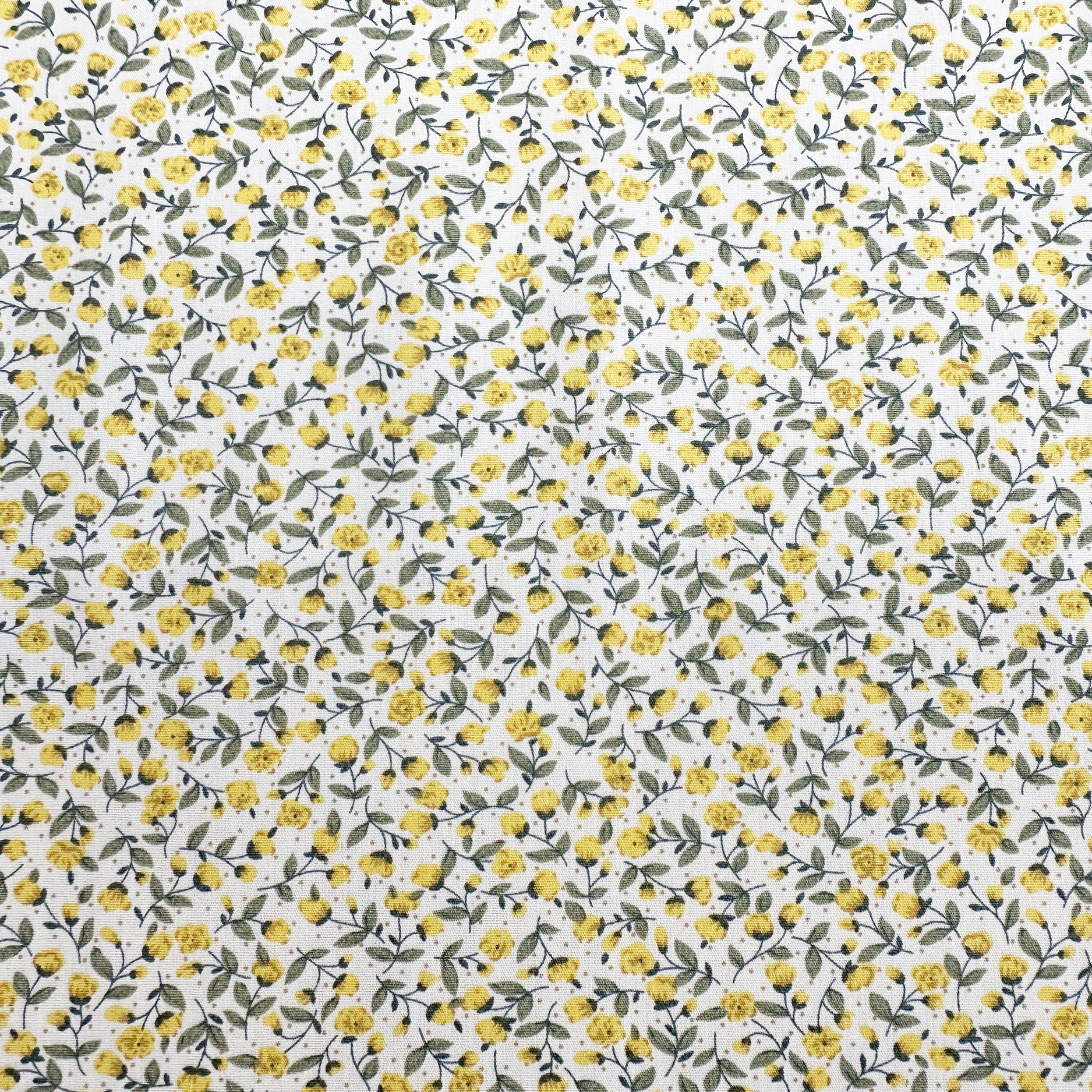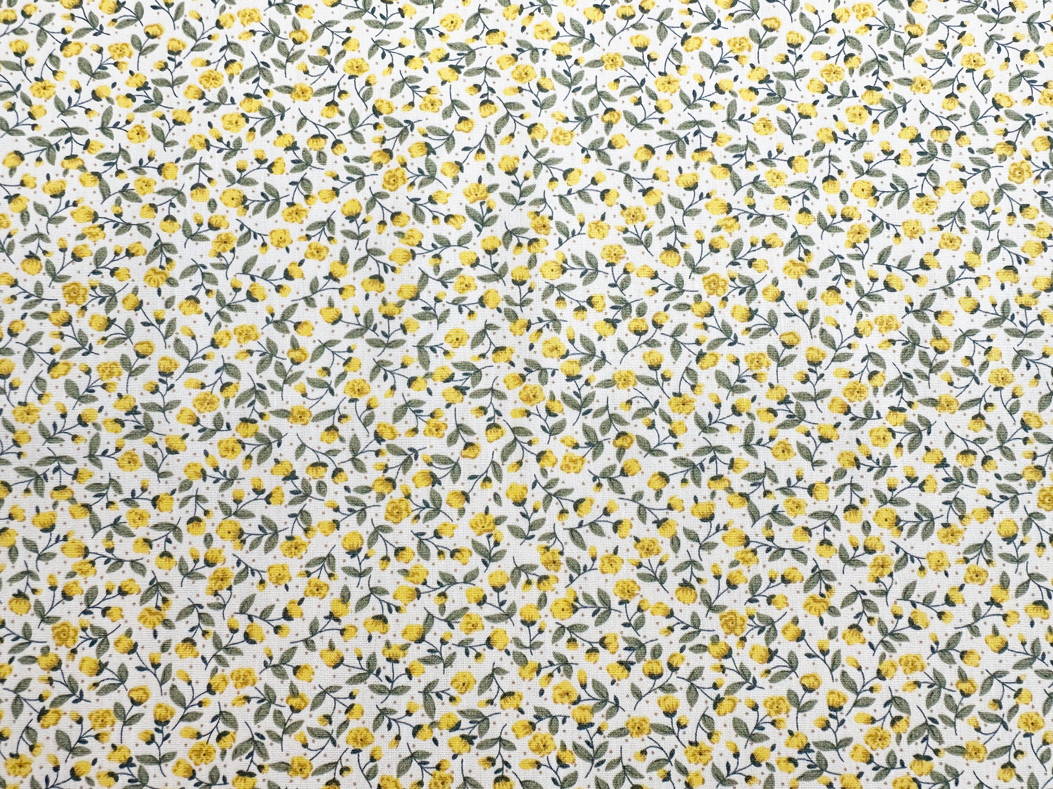Cotton Fabric - Pretty Yellow Ditsy Floral Print on Cream