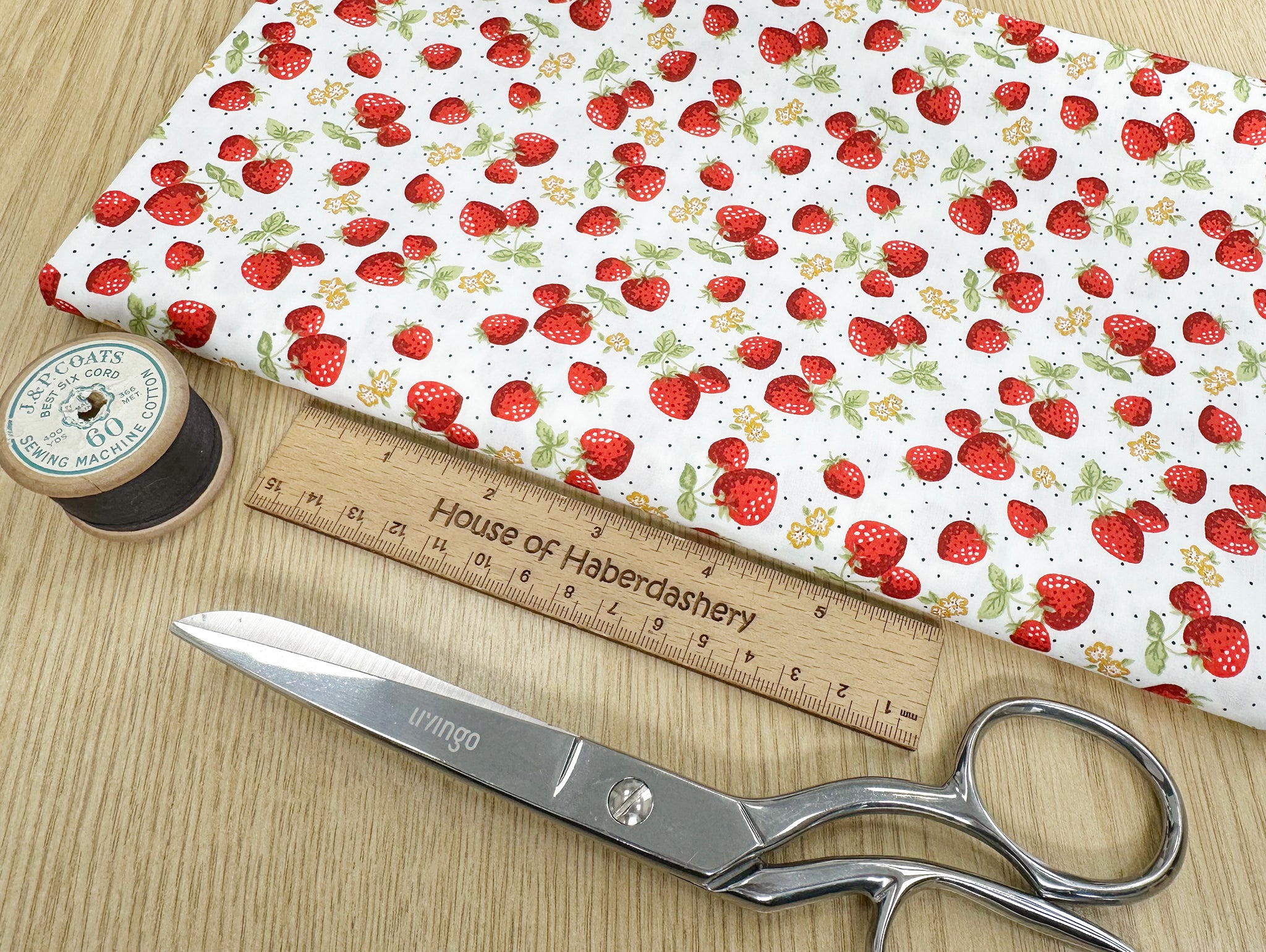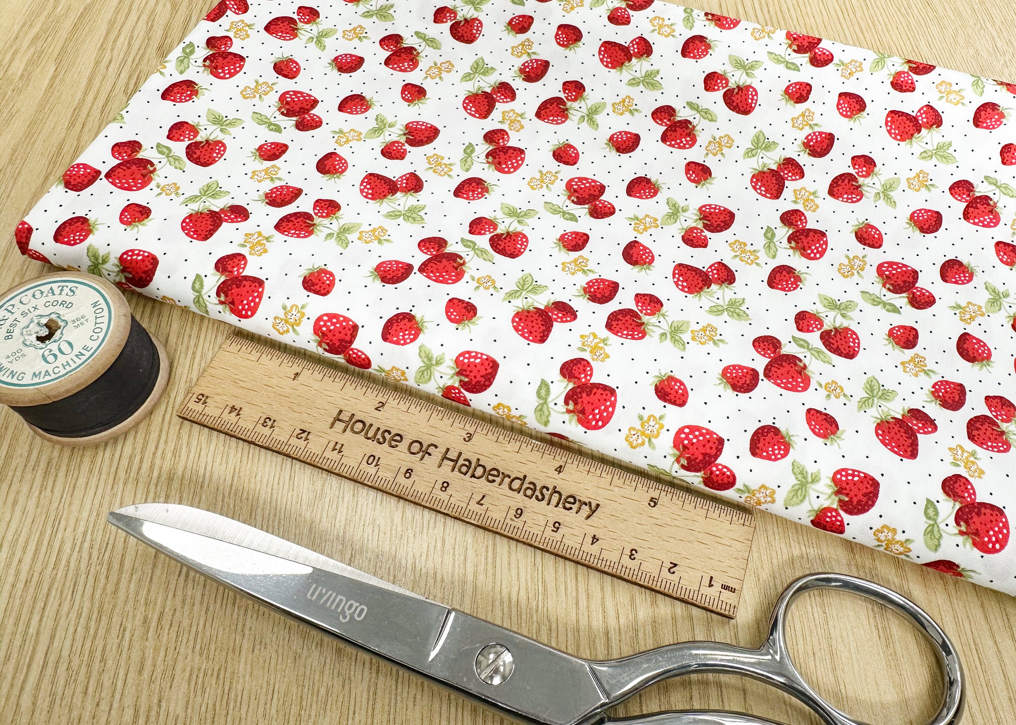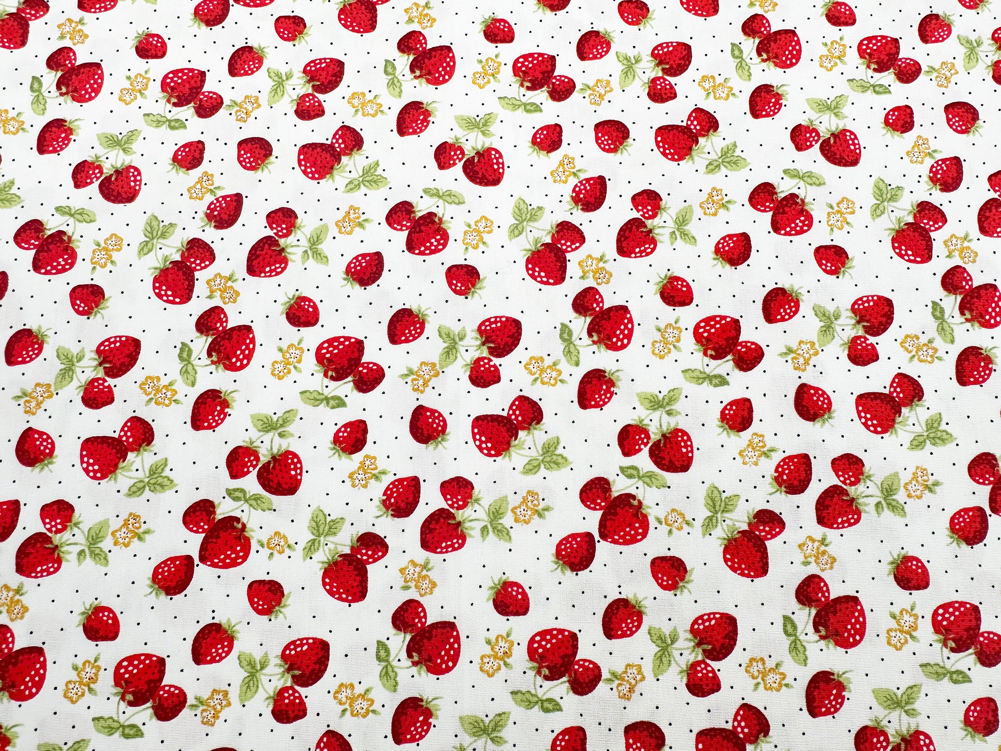 Cotton Fabric - Strawberry Blossom on Ivory