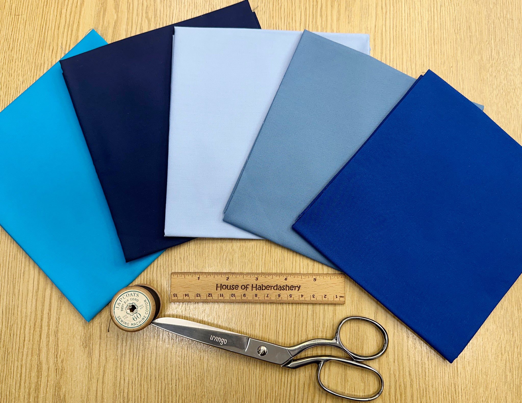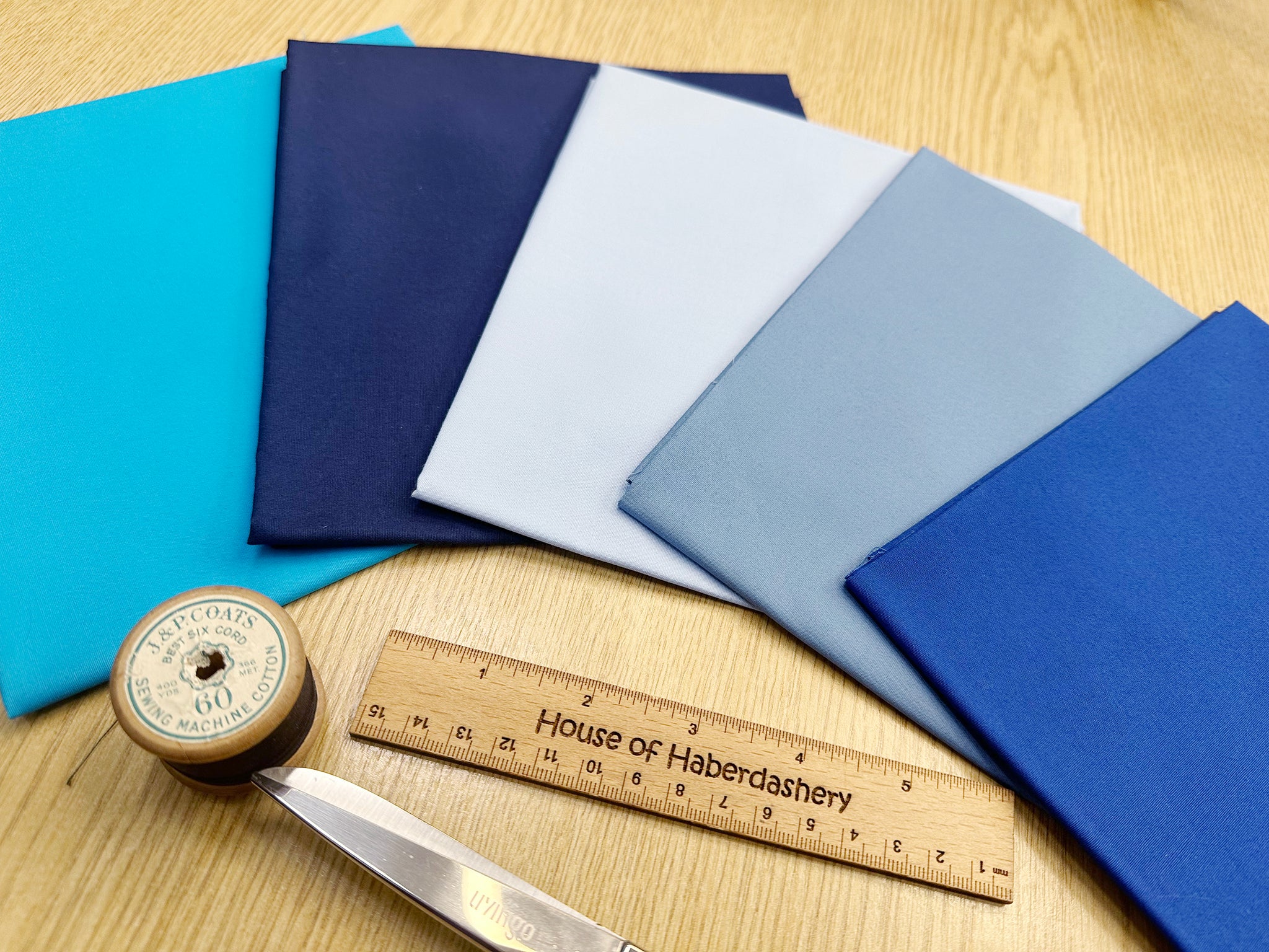 Fat Quarter Bundle - Plain Blue Colour Cotton Fabric Mix - 5 Piece Bundle