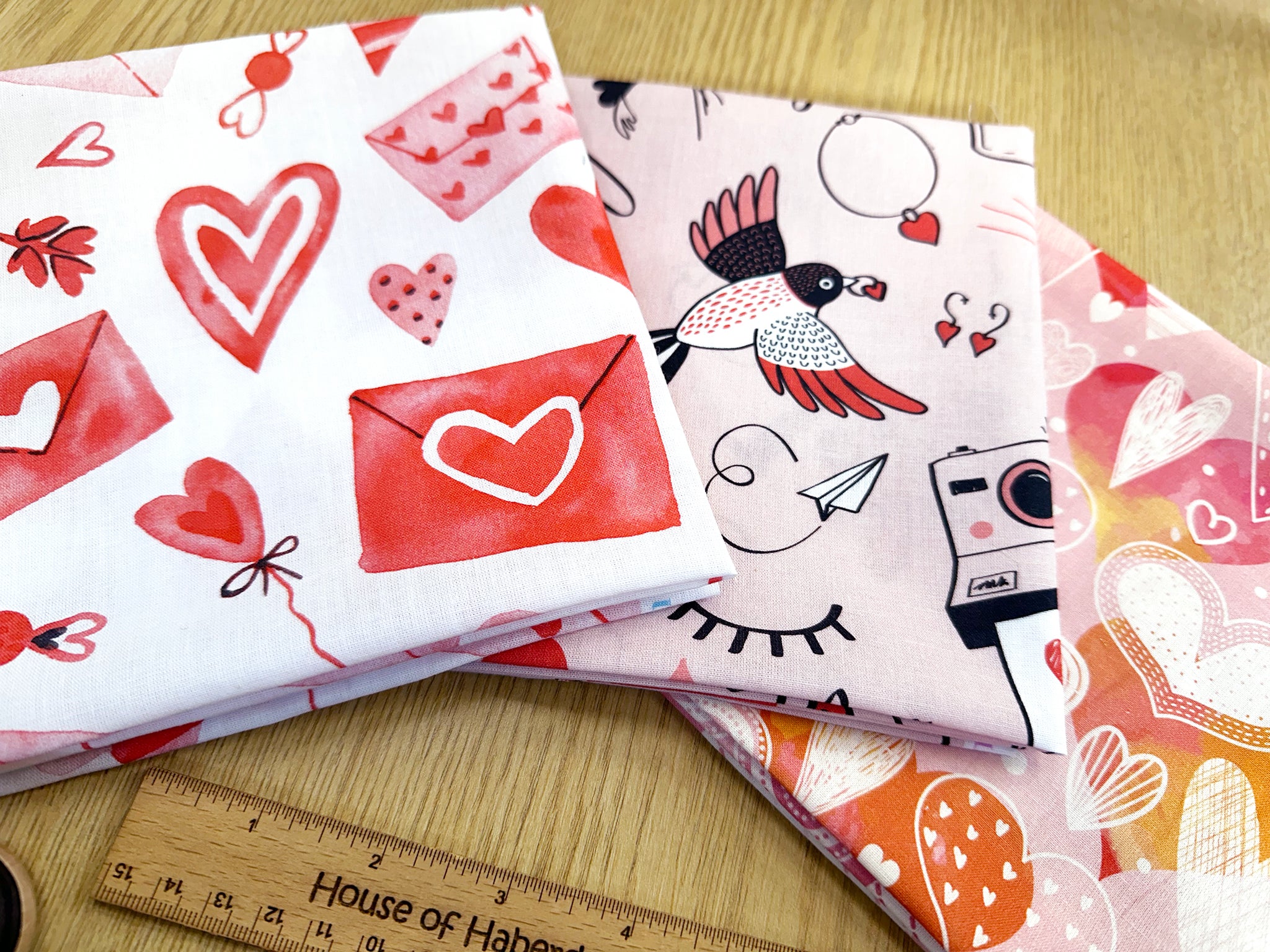 Fat Quarter Fabric Bundle - Love Hearts Pink & Red Valentines Mix - 3 Piece Bundle