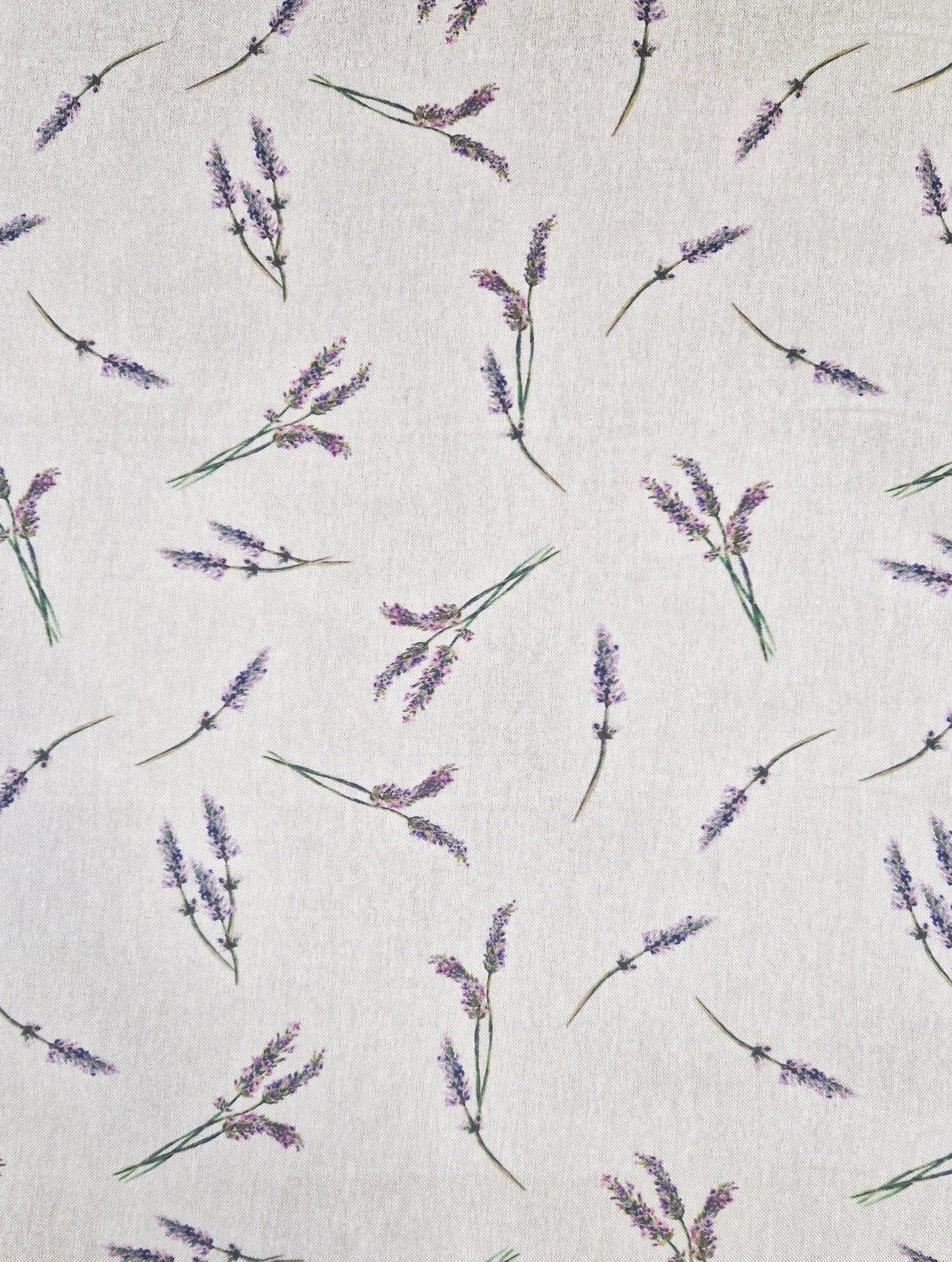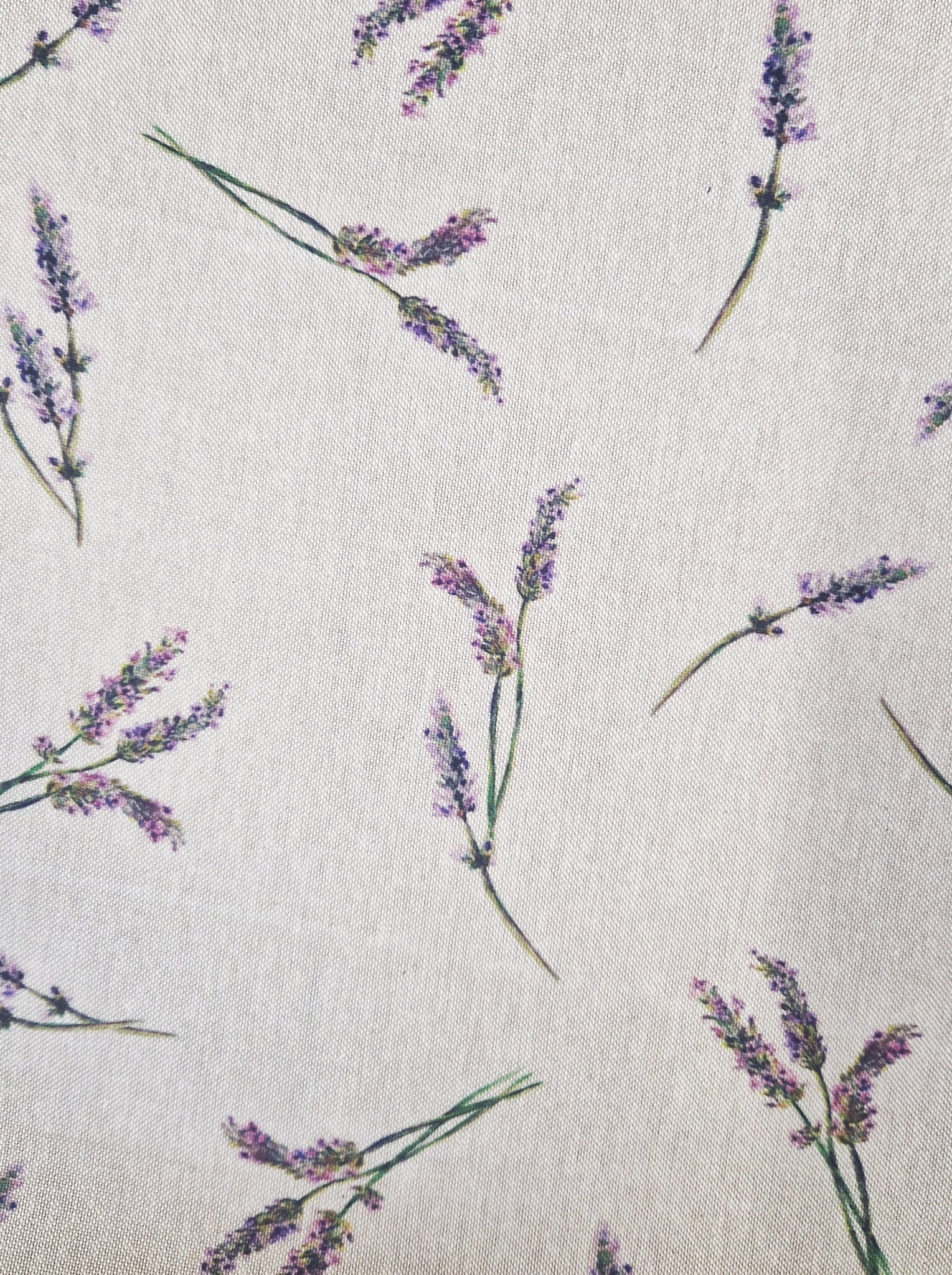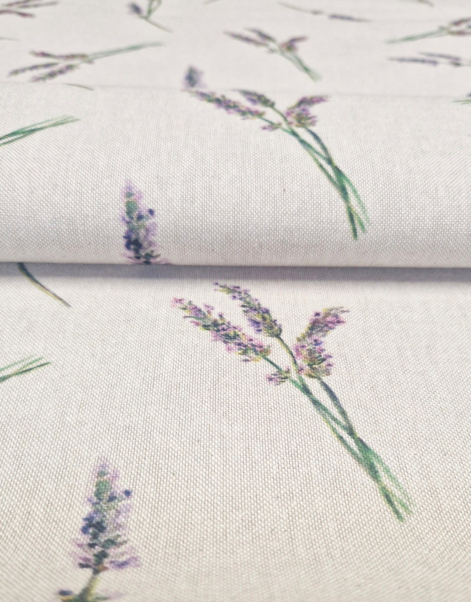 Upholstery Fabric - Cotton Rich Linen Look Material - Lavender Flowers